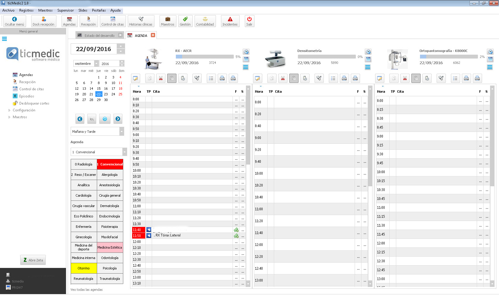 La agenda de Ticmedic permite la gestión de múltiples agendas, máquinas y facultativos de diferentes especialidades organizadas de la manera más práctica mediante visores.